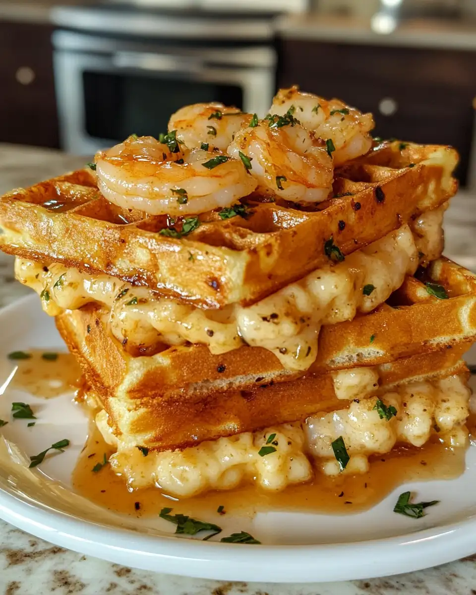 Epic Garlic Butter Shrimp & Mac Waffle Sandwich Bombs Explosion - Featured Image