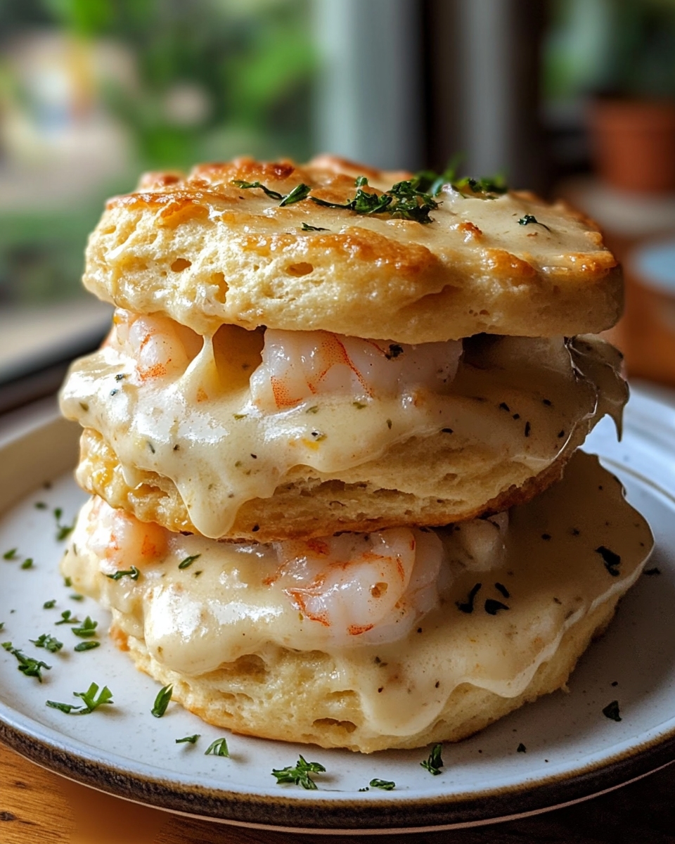 Melt-in-Your-Mouth Triple-Cheese Shrimp Alfredo Biscuit Stackers Extravaganza - Featured Image